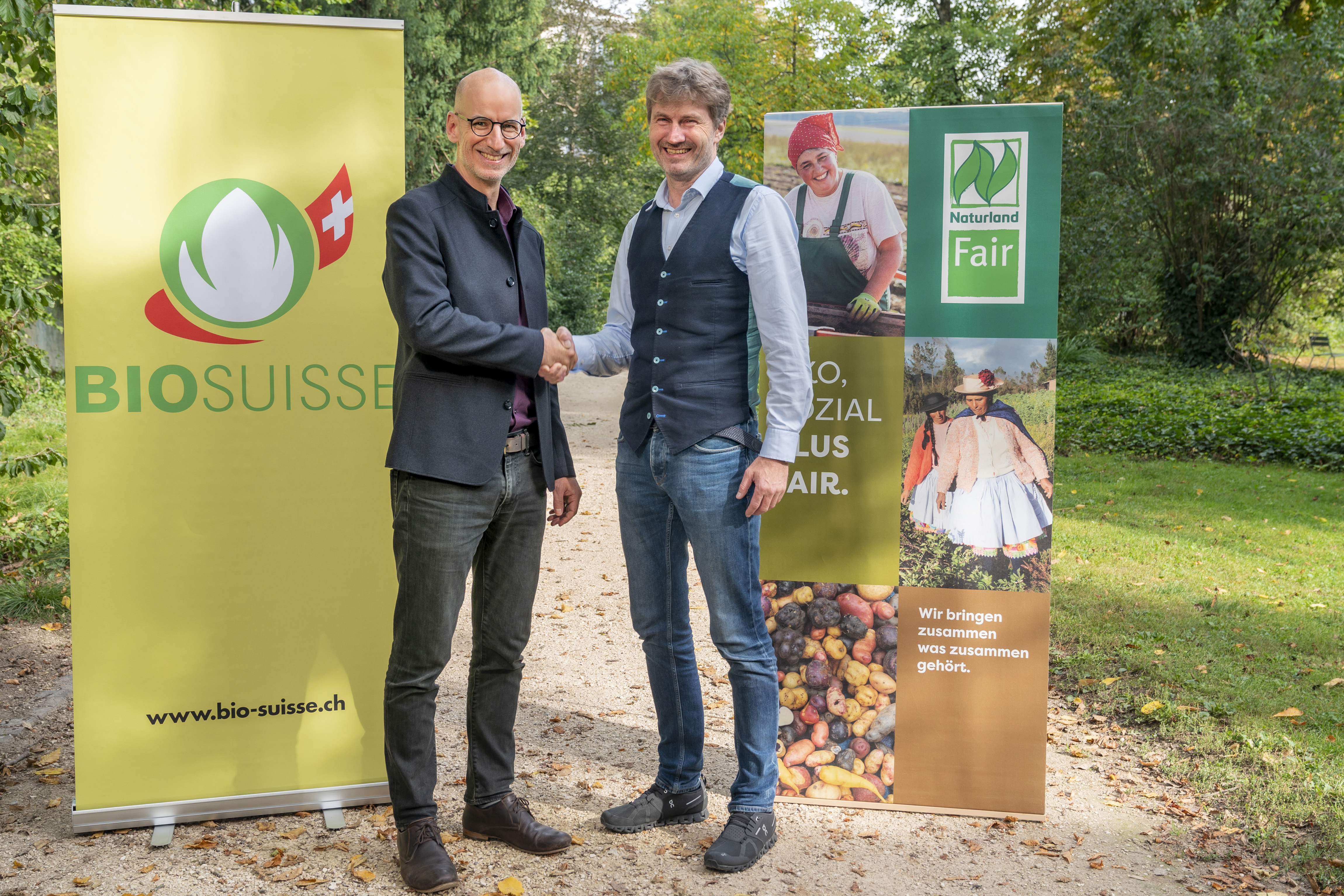 Naturland und Bio Suisse sind Inhaber und Garanten von hochwertigen Bio-Standards (Naturland/Naturland Fair und Knospe), die weit über die Gesetzgebung zur ökologischen Produktion hinausgehen und beispielsweise auch in den Bereichen Biodiversität und Tierwohl zu den Vorreitern gehören. Naturland und Bio Suisse arbeiten international mit mehreren tausend Bio-Produzent:innen zusammen und fördern auf diesem Weg den Biolandbau weit über die eigenen Landesgrenzen hinaus.
